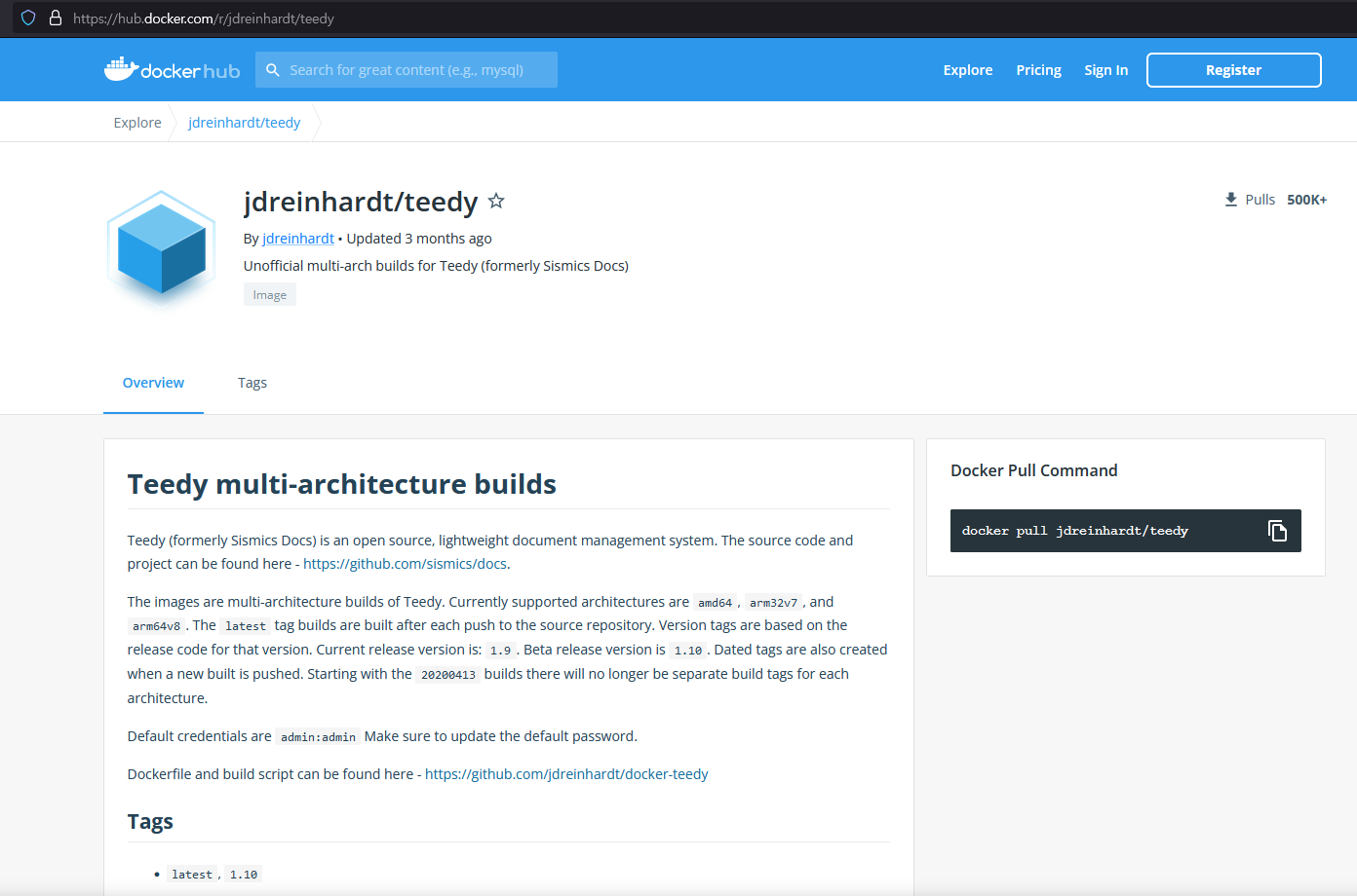 https://hub.docker.com/r/jdreinhardt/teedy