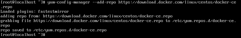 $ sudo yum-config-manager --add-repo https://download.docker.com/linux/centos/docker-ce.repo